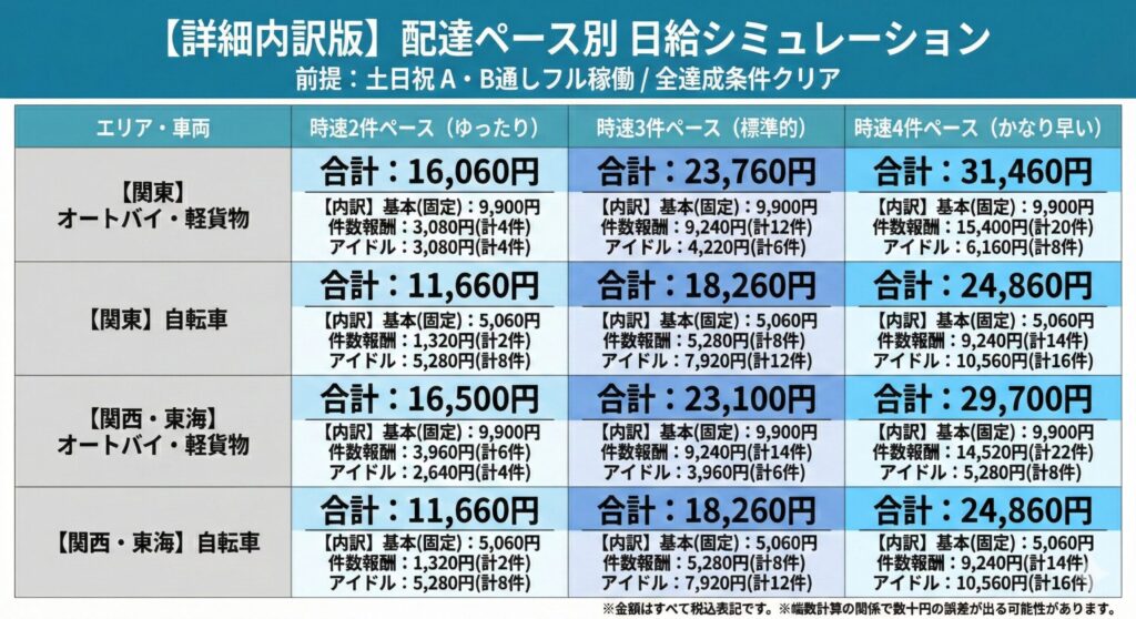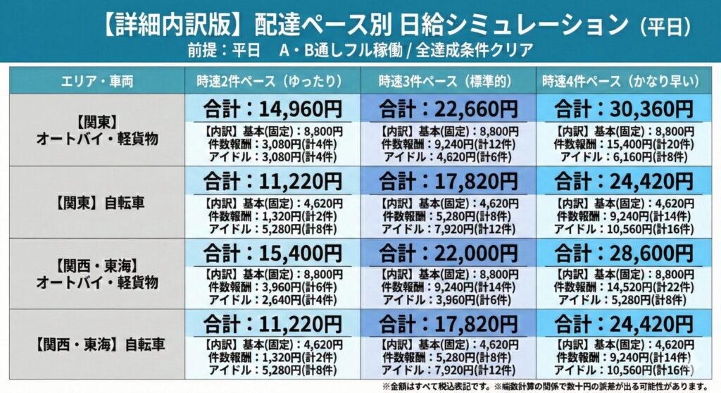 - 【時速2〜4件】ペース別のリアルな日給シミュレーション(内訳付き)