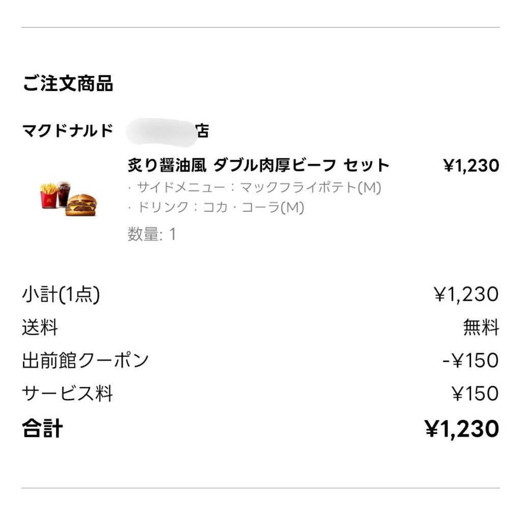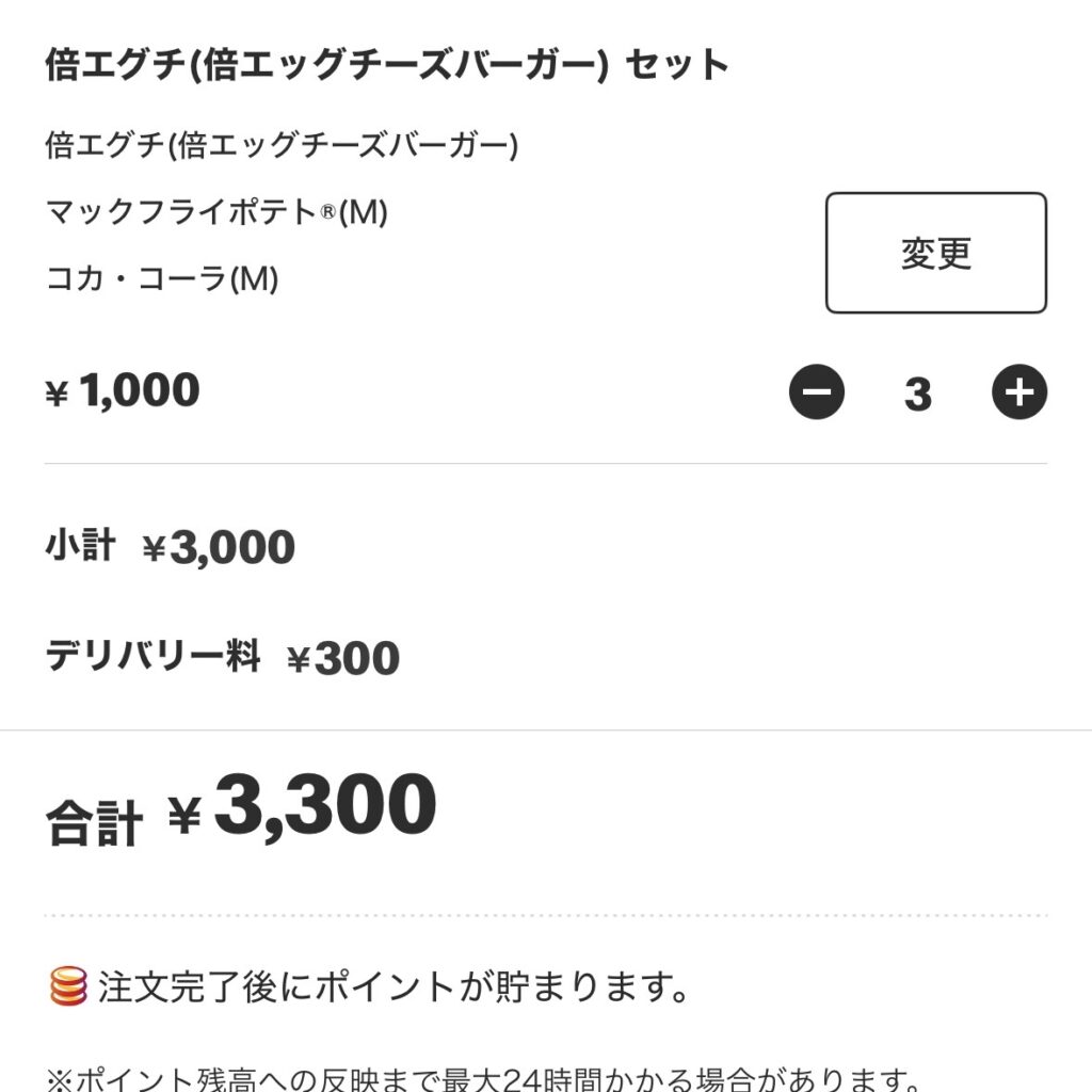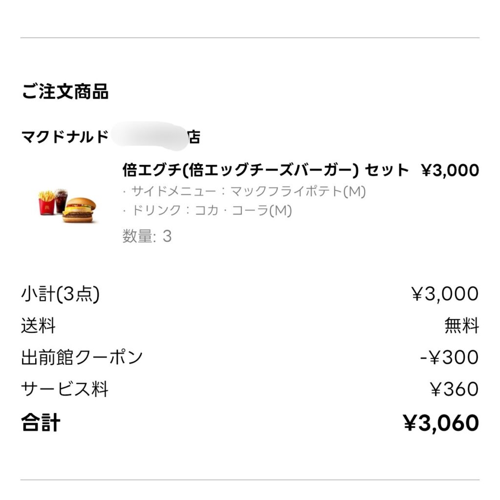 マックデリバリーは300円固定。
