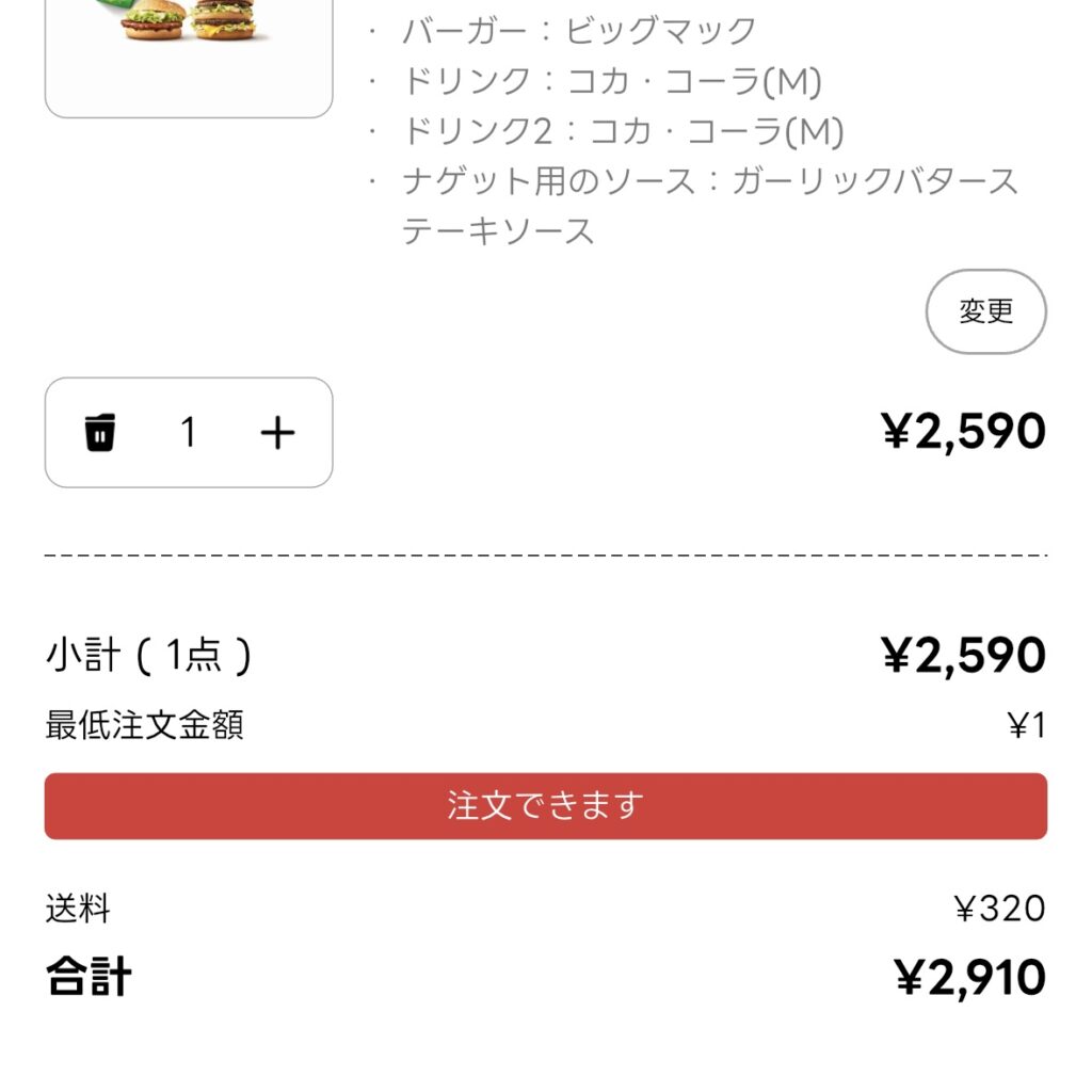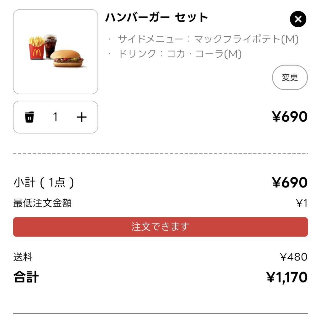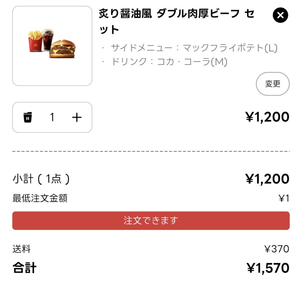 ▶最低注文金額に1円でも足りないと、注文自体ができません(朝マックは1,000円〜)。 - サブスク特典がない