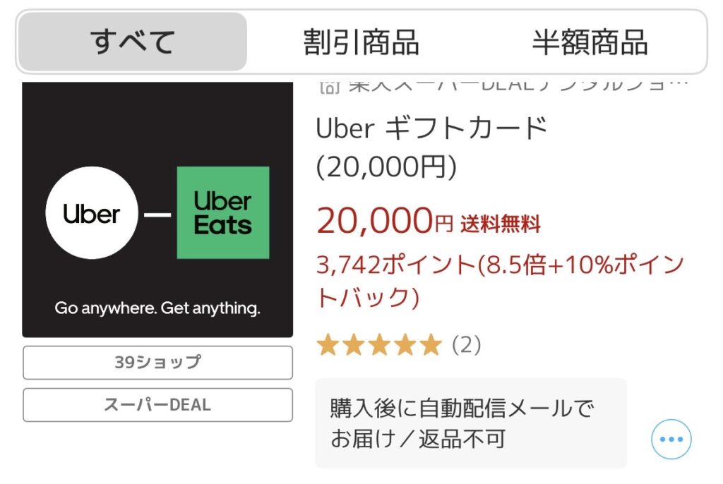 - Uber Eats ギフトカード購入で超おトク!