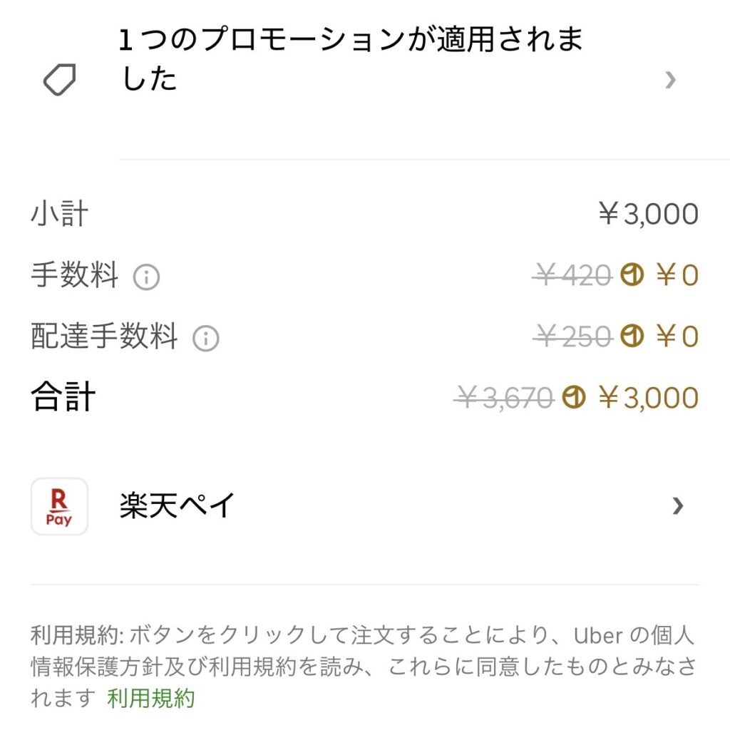 楽天モバイル・楽天経済圏の方:Uber Eats