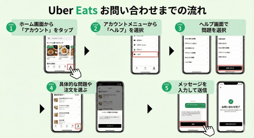 AIチャットボットに繋がりなかなか人間サポートまで辿り着きません。辿り着かない場合はXのUber Eats公式からDMで問い合わせることも可能です。